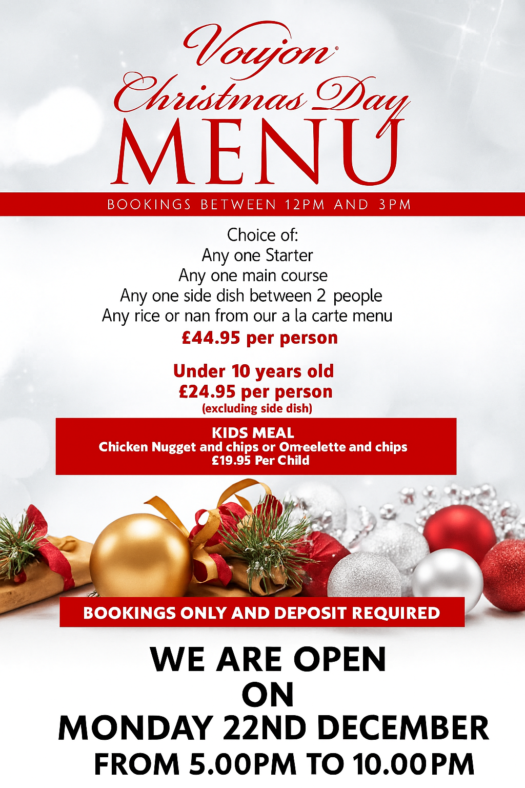We are proud to present the finest chef in the culinary world. The management takes great care to ensure that our diners are happy with the food. We pride ourselves on our customer service and quality of food. VOUJON RESTAURANT uses only the very best ingredients to prepare your meal. In addition to the all time favourite dishes, we also offer our own specialities creating unique meals for you to enjoy. VOUJON RESTAURANT is an Authentic Cuisine in CORBY, tempted by an unrivaled range of Authentic & Imaginative traditional and fusion dishes. Our approach to healthy cooking is that we try to minimize additives in our dishes. So enjoy your meal & have a memorable experience!!